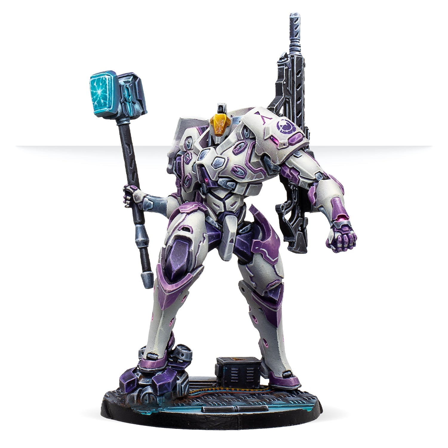 This box includes an injected thermoplastic miniature of Agamemnon with AP Spitfire and Heavy Flamethrower. This lightweight TAG is the new addition to the Steel Phalanx army of your Operation: Blackwind box, providing the innate offensive power of the TAGs.