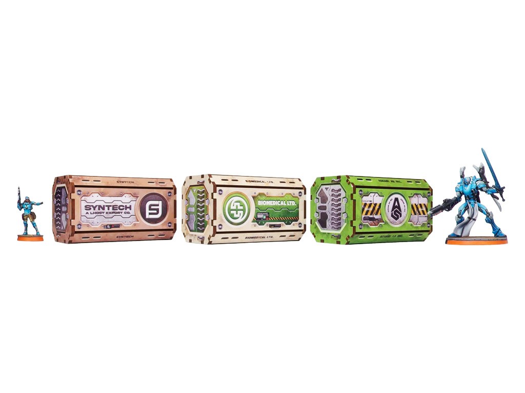 The Al Medinat Containers PREPAINTED set consists of 3 containers, dedicated for Infinity the Game by Corvus Belli.