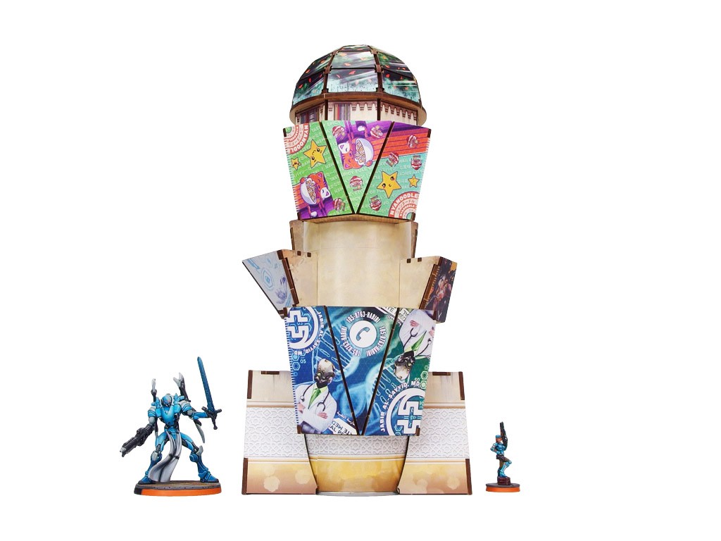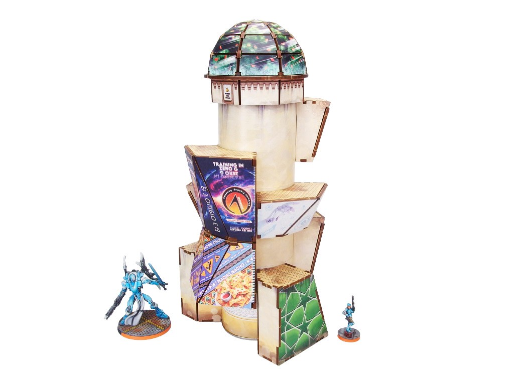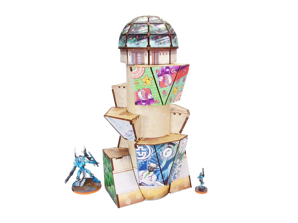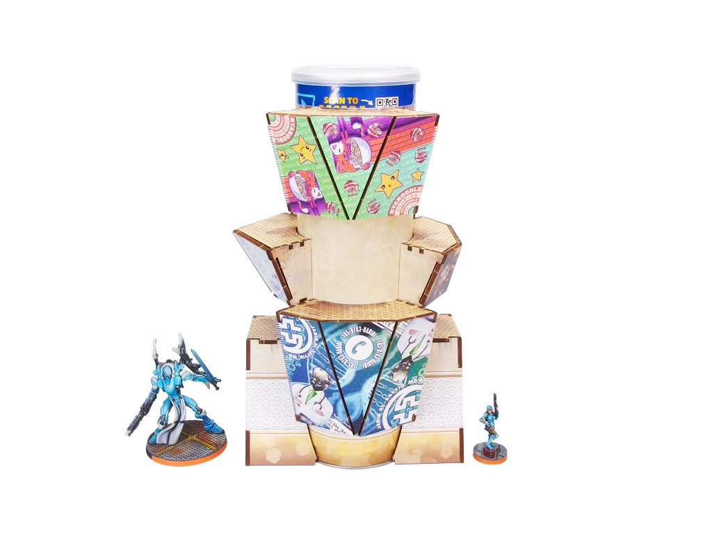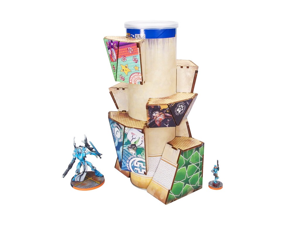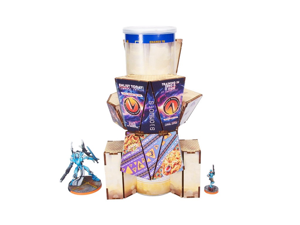 The Al Medinat Terraformation Tower (1) PREPAINTED (sand) PREORDER is a set of 8 HDF sections designed to be attached to a 3" diameter Tube from your favorite chips (available separately at your convenience store), and a set of printed stickers to cover the tube sides. Dedicated for Infinity the Game by Corvus Belli.