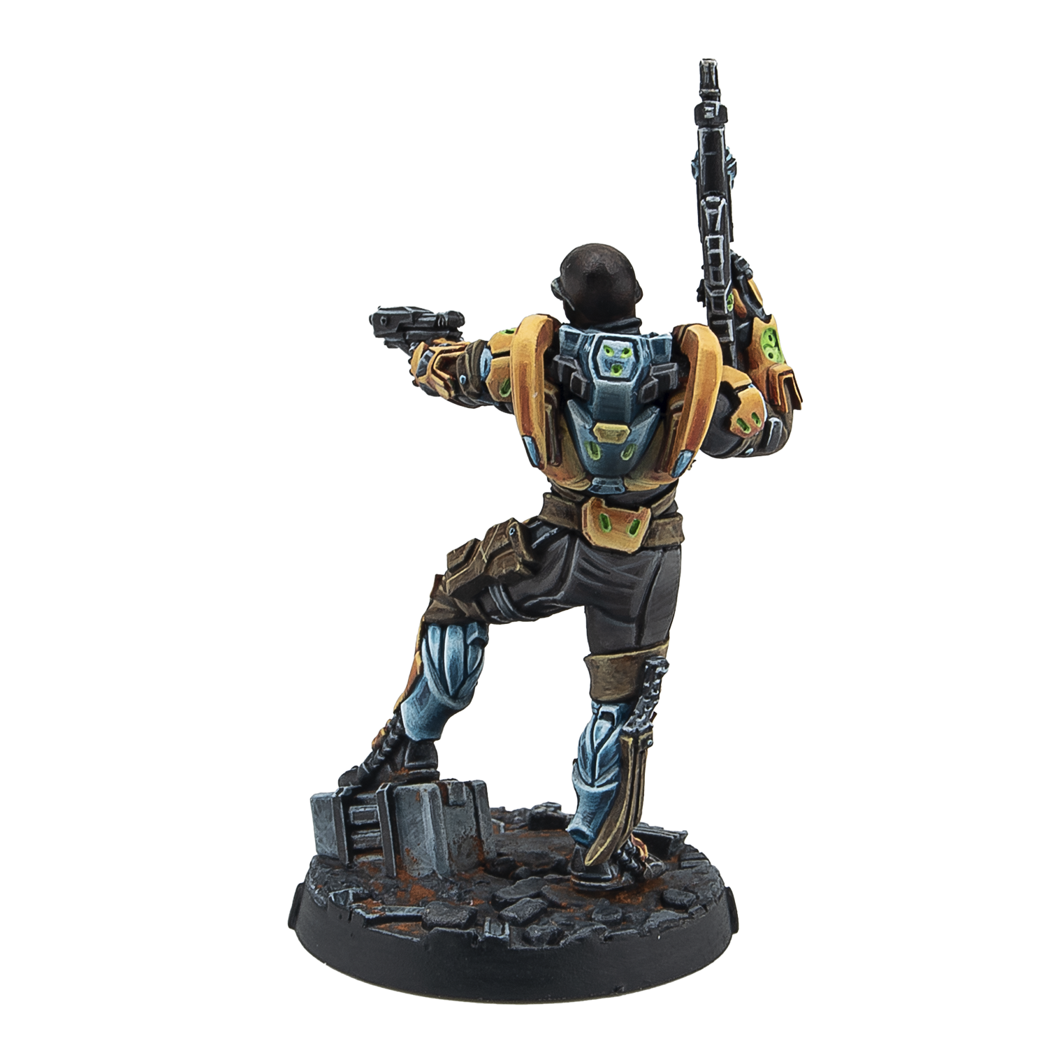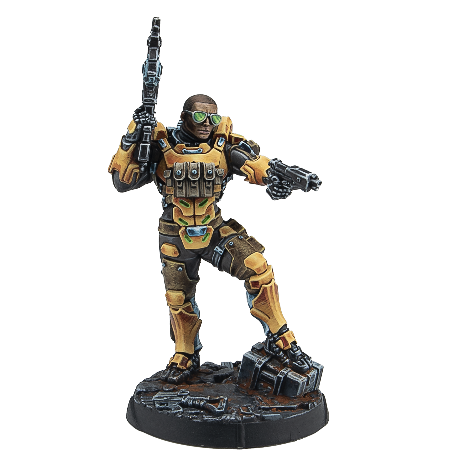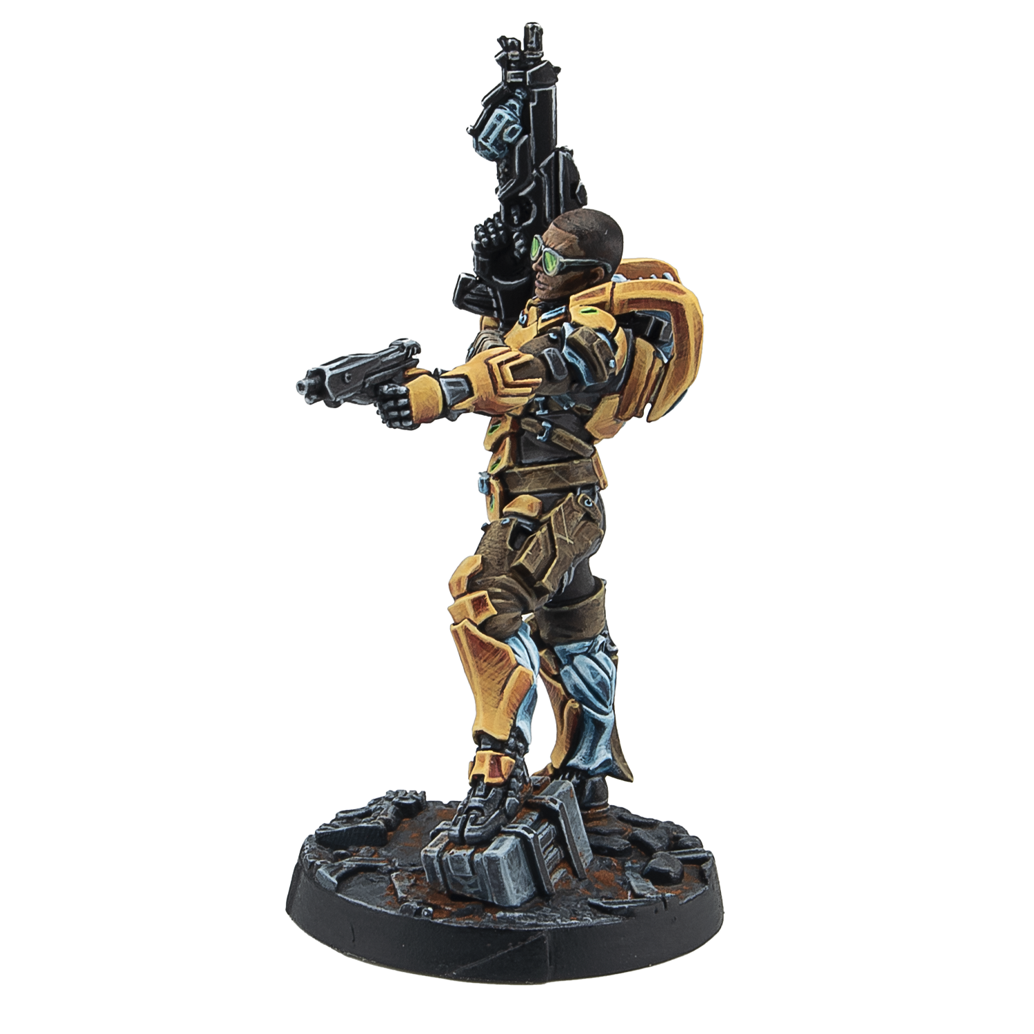 This box includes 3 miniatures: 1 Gui Feng Xi Zhuang with Combi Rifle, and 2 Madtraps & second arm/weapon option. This seasoned Celestial Guard will be a great addition to your Imperial Service Action Pack (REF: 281348-1140). Thanks to his array of weapons and the fact that he can be part of any Fireteam, he will give your army great control of the game table.