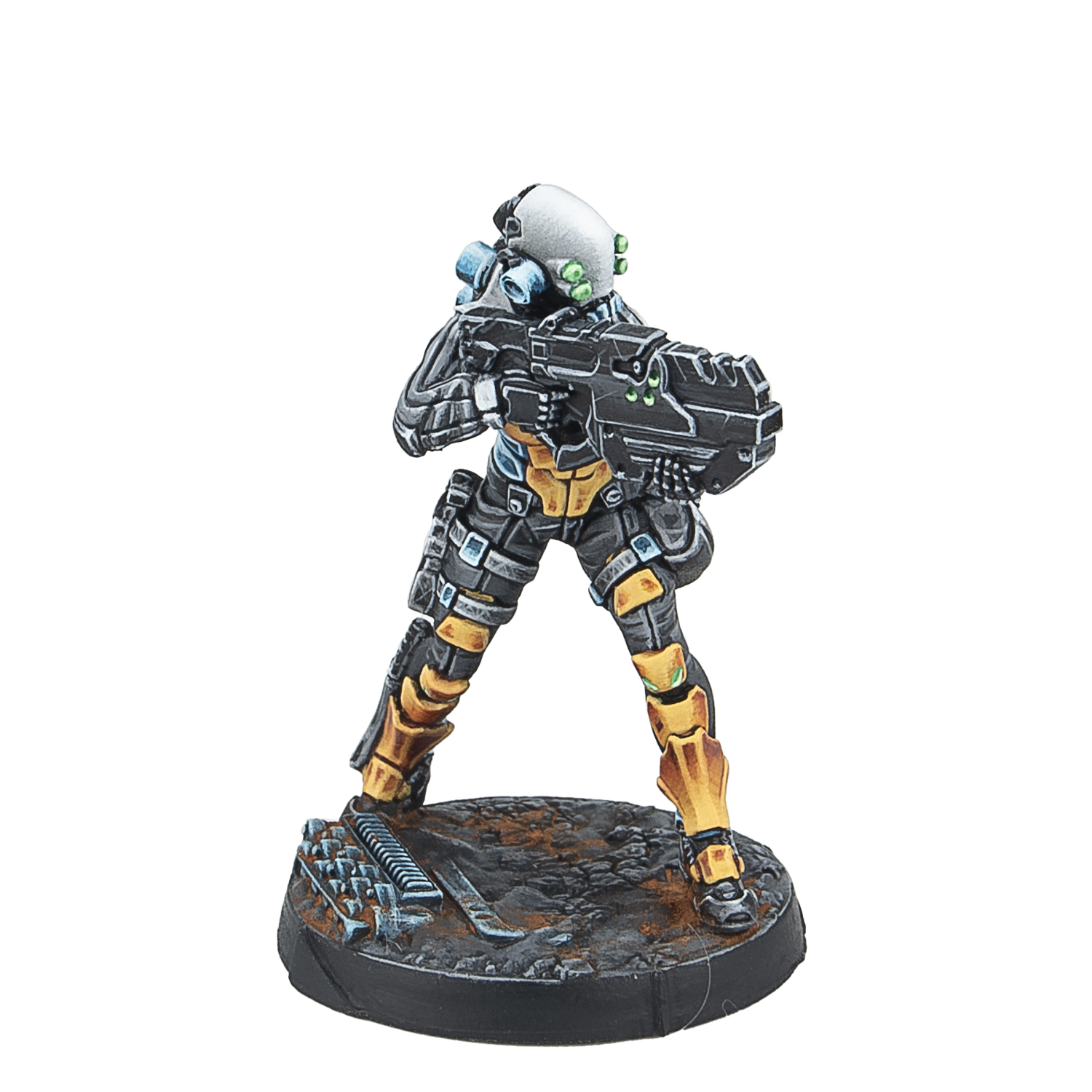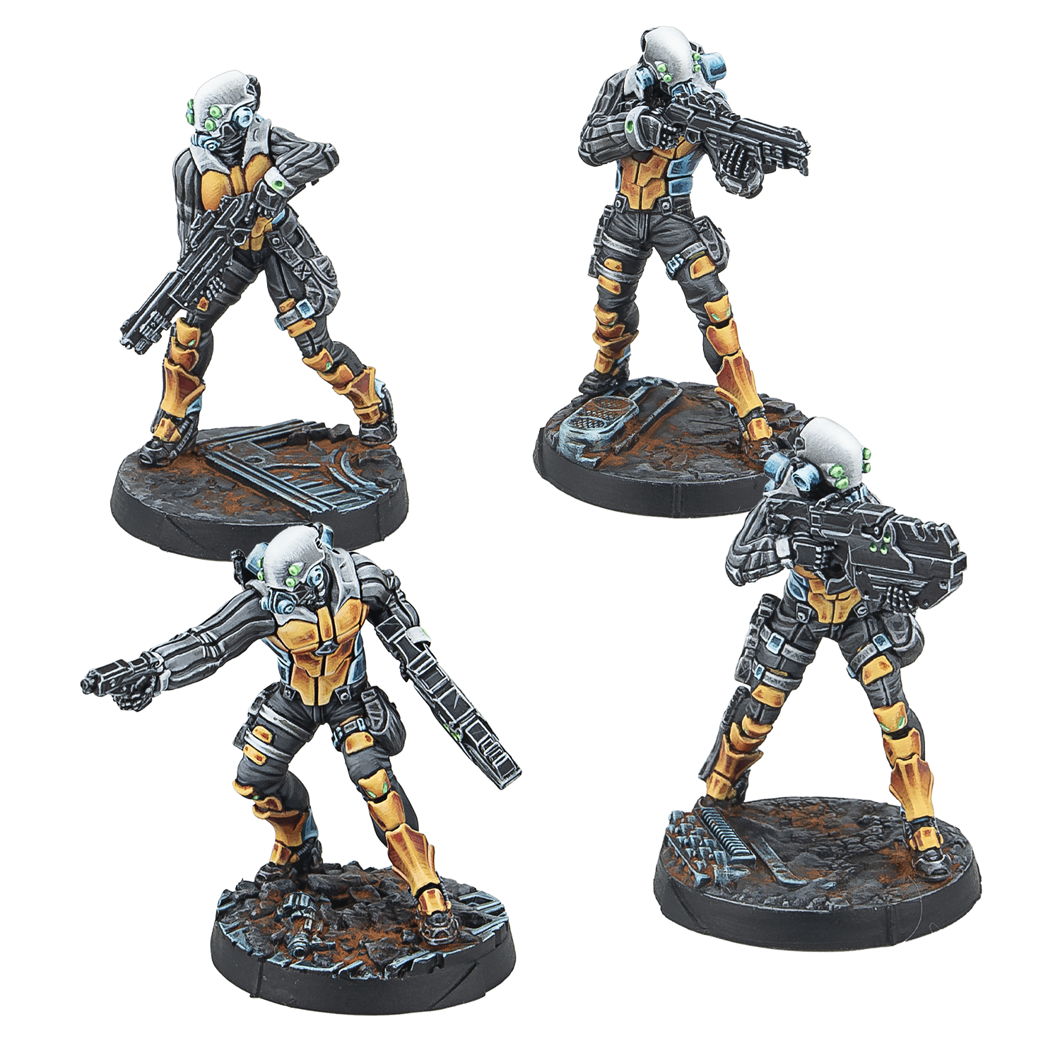 This box includes four metal miniatures: Two Kuang Shi with Chain Rifles, and two Kuang Shi with Boarding Shotguns. A new design and a new sculpt for an old classic of the Yu Jing Army Lists. This box is a perfect complement to the Imperial Service Action Pack (REF: 281348-1140) and allows players to create a Kuang Shi Fireteam.