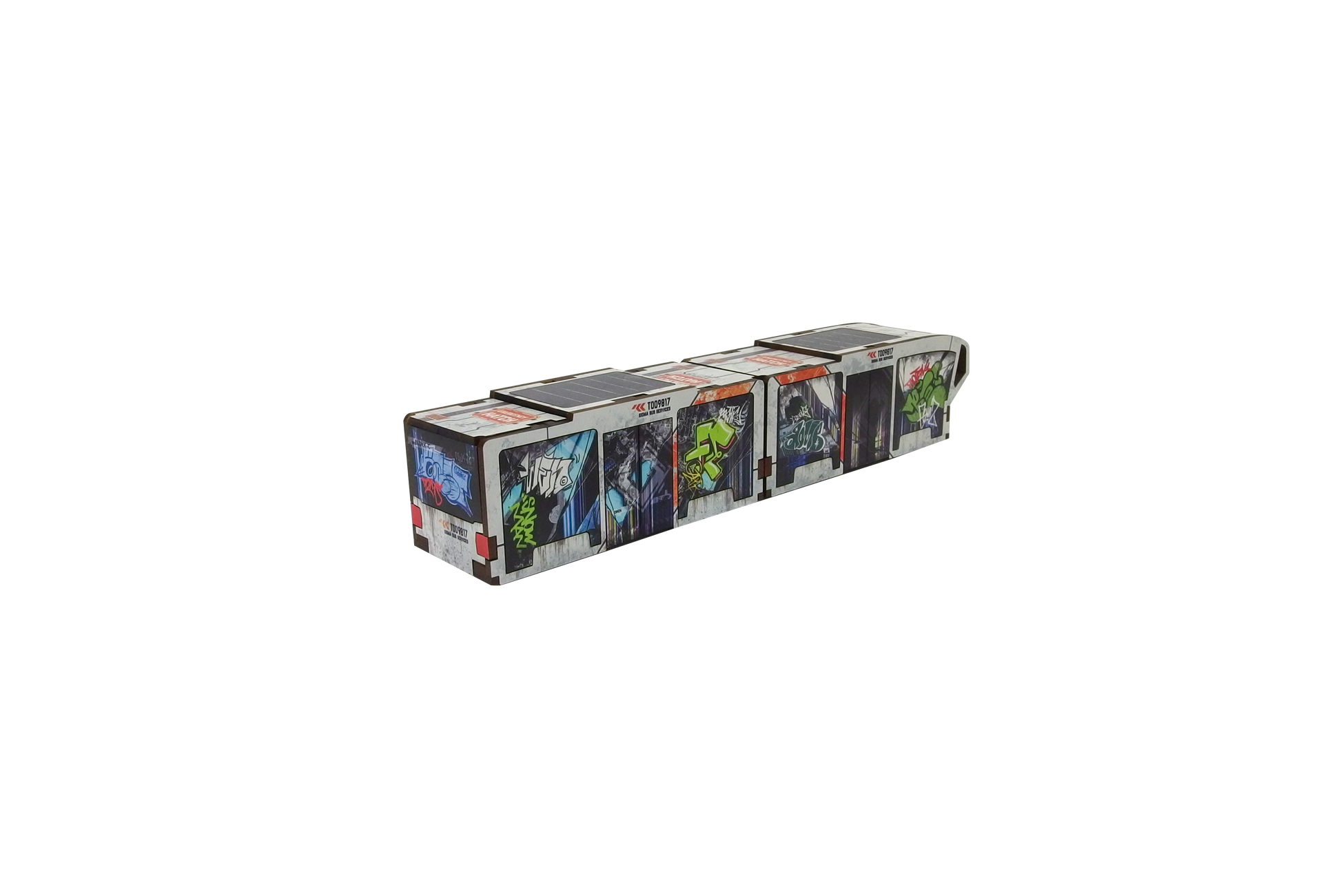 The Precinct Sigma Bus Services PREPAINTED set consists of one bus and one trailer. It can be used as an articulated vehicle or a single bus and a pod.