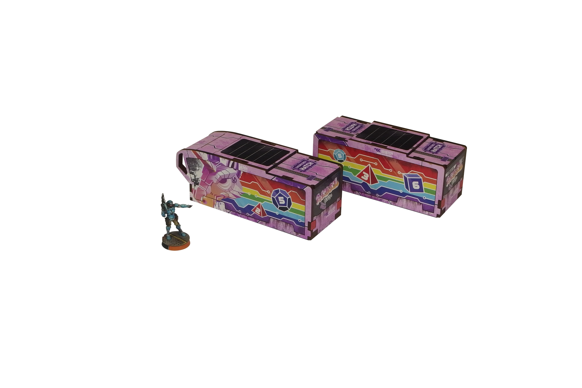 The Precinct Sigma Food Booths PREPAINTED set consists of 3 stalls, dedicated for Infinity the Game by Corvus Belli.