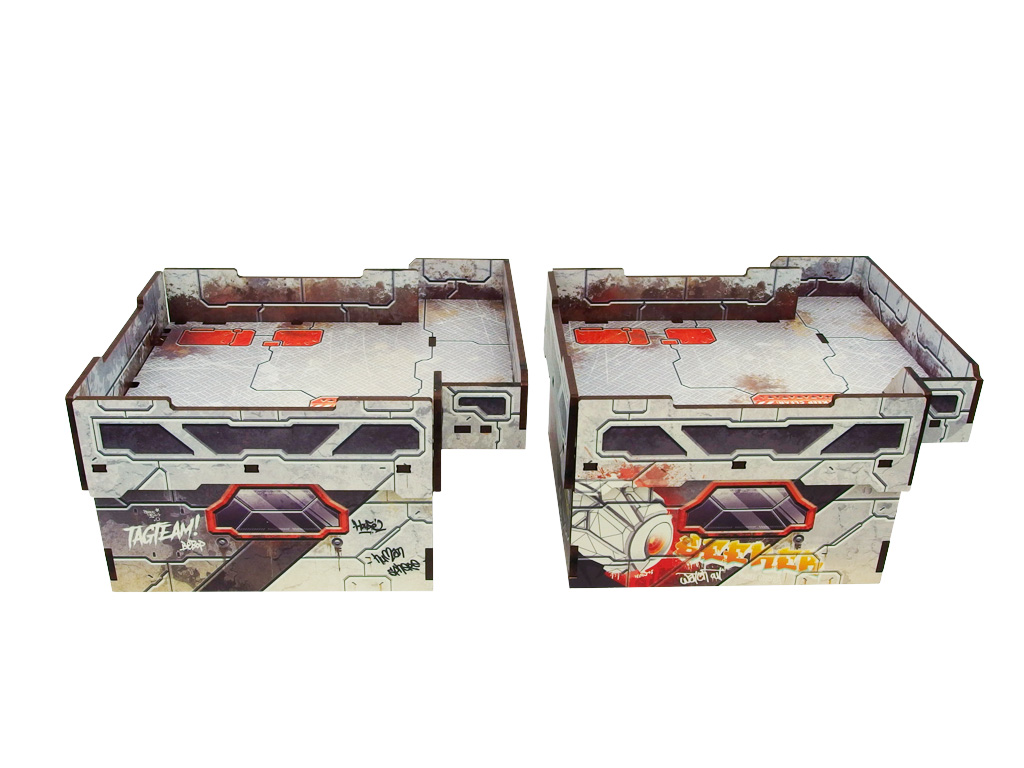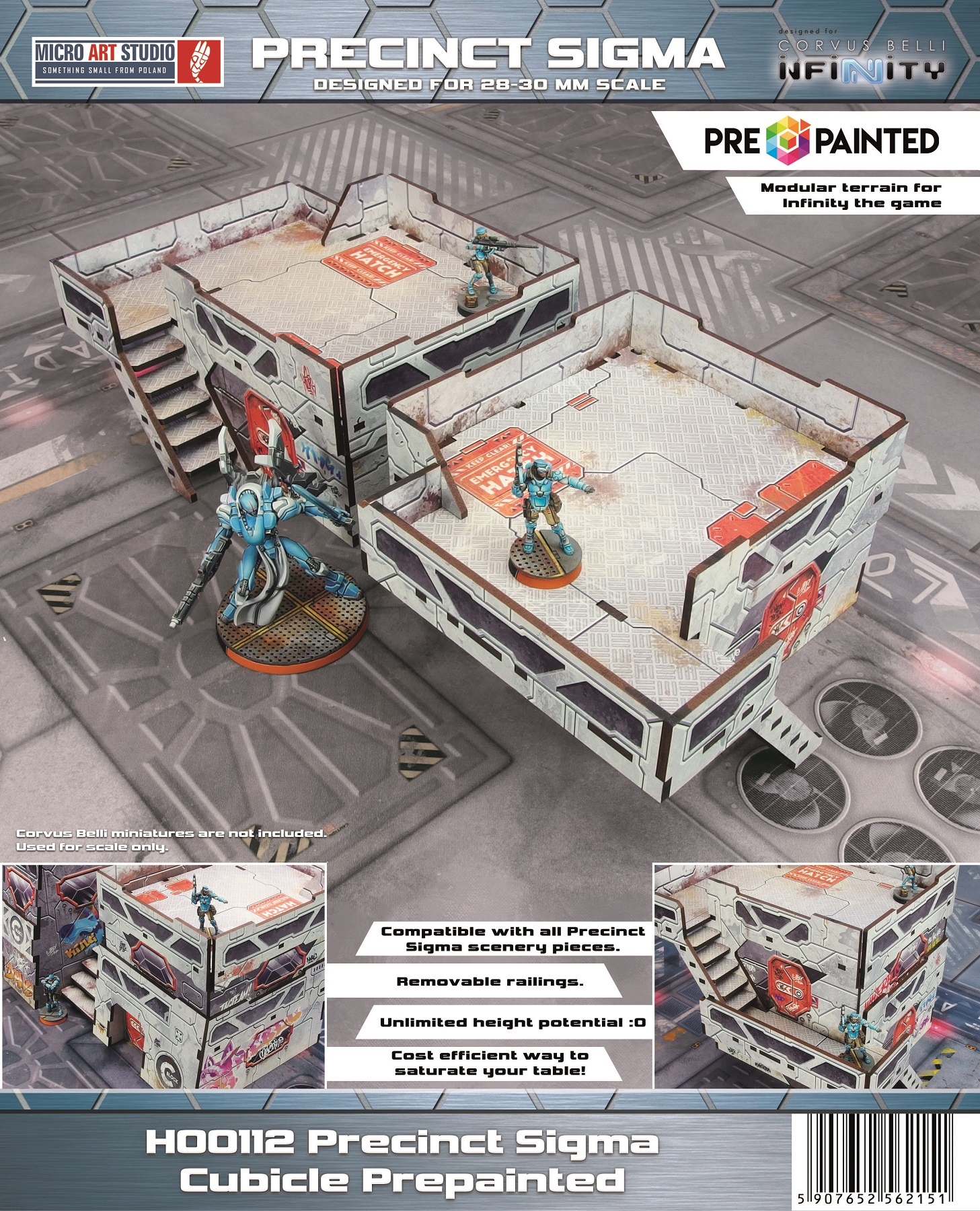 The Precinct Sigma Cubicle PREPAINTED is a set of two buildings, dedicated for Infinity the Game by Corvus Belli.