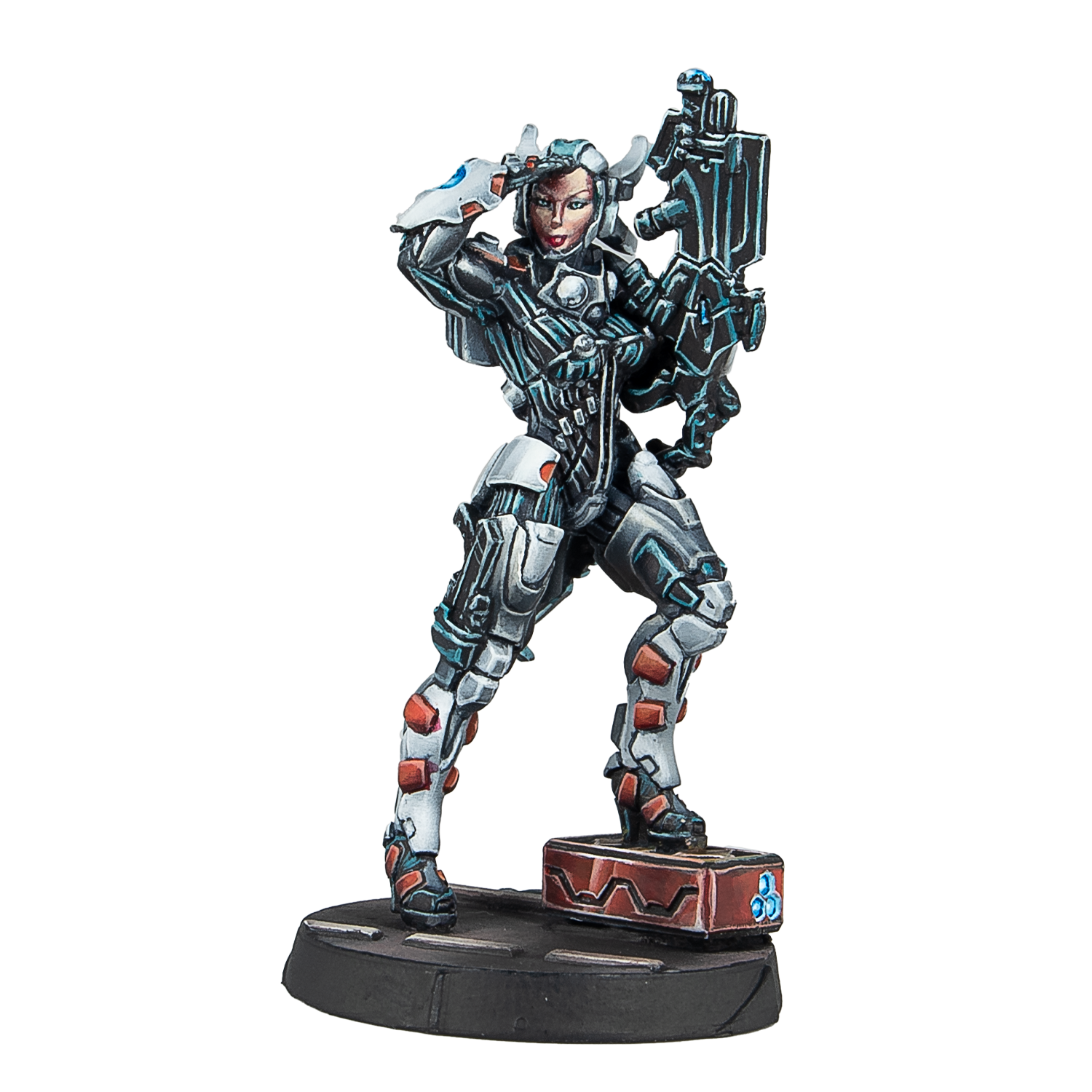 This box includes four metal miniatures: a Riot Grrl with Combi Rifle and E/Mitter, a Riot Grrl with Missile Launcher, a Riot Grrl with Boarding Shotgun, and oneTinBot. This new Infinity unit box provides all the weapon options needed. Now you can compose a Fireteam of these Heavy Infantry from the Bakunin Sectorial Army. The Riot Grrls are the true daughters of punk and the street icons of urban warfare. This box is a great complement to the Bakunin Sectorial Army you started with the Bakunin Observancec Action Pack (REF: 281522-0995).